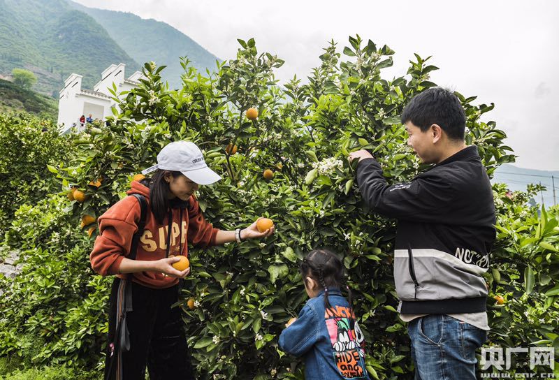 秭歸縣豐悅臍橙合作社社員劉國華樂呵呵地為游客將剛采摘的新鮮倫晚臍橙進(jìn)行裝箱打包!笆昼姾筮@些橙子就可以通過快遞發(fā)出去!”劉國華自豪地指著不遠(yuǎn)處一幢漂亮的小別墅:“臍橙果換來的!做電商、搞釆摘游,經(jīng)營方式靈活點(diǎn),橙子可以更值錢。去年我家賣了16萬,在村里只是中等水平!