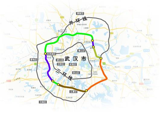 圖為:武漢四環(huán)線建設規(guī)劃圖