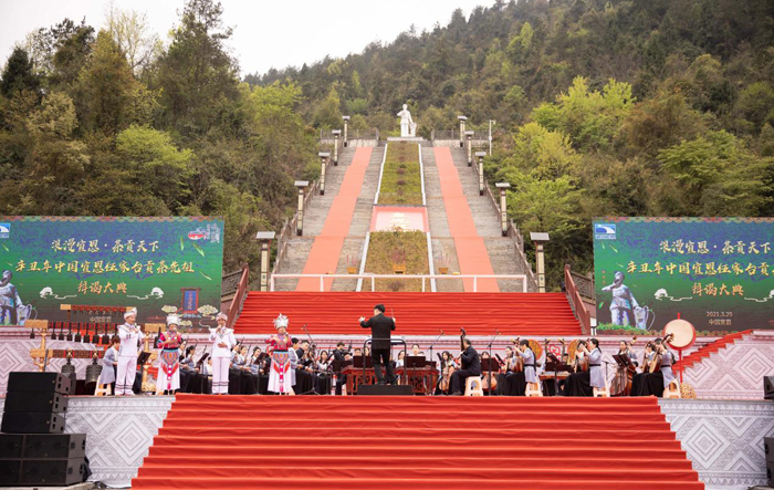 欣賞古風(fēng)雅樂,品鑒貢茶神韻。本屆大典以湖北省編鐘國樂團(tuán)的傾情演奏開場,《春到伍家臺》奏響了巴楚樂音的融合魅力與春的歡快樂章,也向世界發(fā)出了來自宣恩的邀請!爸敌脸笾愒沦猓缐咧;聚貢茶之故鄉(xiāng)兮,祭吾先祖。”拜謁儀式莊嚴(yán)隆重,展示了宣恩貢茶文化、土家風(fēng)俗。歌舞《浪漫宣恩》、茶服走秀《中國茶》、原生態(tài)演唱加民樂合奏《唱支山歌給黨聽》等節(jié)目精彩紛呈,融合土家民族歌舞、非遺特色展演等元素,同時向中國共產(chǎn)黨百年華誕獻(xiàn)禮。