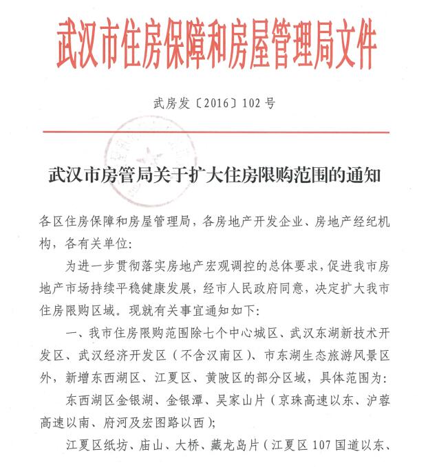 武漢擴(kuò)大樓市限購范圍 將江夏東西湖黃陂部分區(qū)域納入