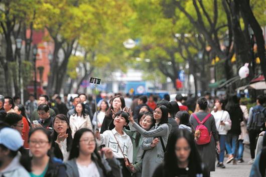 昨日,漢口黎黃陂路,游客接踵摩肩(記者曹大鵬攝)
