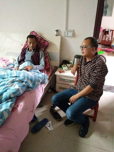 楊紅星老師在病床前看望精準(zhǔn)扶貧戶(hù)劉繼申