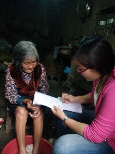 教師王麗在精準(zhǔn)扶貧戶(hù)蘇奶奶家問(wèn)她身體情況及需求