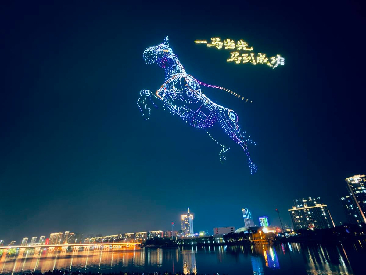 正月初一,隨州夜空上演無人機(jī)煙花盛宴