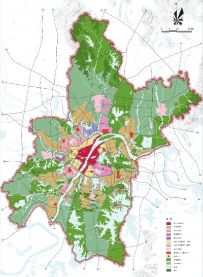 積極落實“主城做優(yōu)、四副做強、城鄉(xiāng)一體、融合發(fā)展”空間發(fā)展布局總體要求,城鎮(zhèn)空間規(guī)劃布局38個功能分區(qū)。