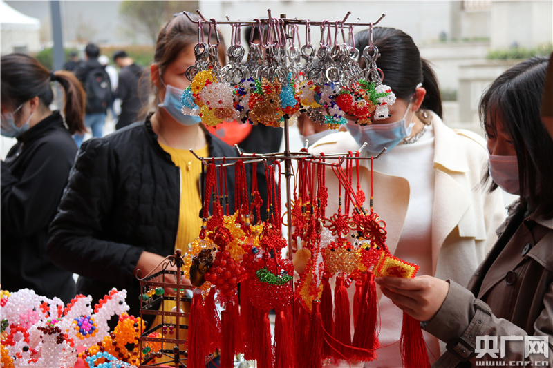 圖為:一些市民對喜愛的非遺工藝作品愛不釋手 央廣網(wǎng)發(fā) 李磊攝