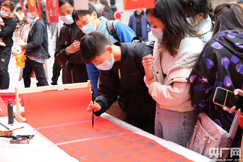 圖為:市民們通過“執(zhí)筆寫!眰鬟_(dá)對美好生活的祝愿 央廣網(wǎng)發(fā) 李磊攝