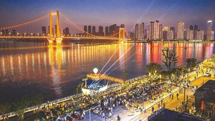 4月18日傍晚,晚霞還未散去,武昌灣1956公園落日音樂會(huì)已開始上演,長(zhǎng)江邊上聚滿了聽音樂的市民游客。該公園自2025年9月底開放后,成為武漢熱門文化地標(biāo),其露天音樂會(huì)是核心特色活動(dòng)之一。 在這里,不僅能和多座長(zhǎng)江大橋合影,還可以看日落,賞晚霞!晚上還會(huì)有落日音樂會(huì),結(jié)合自然景觀與工業(yè)遺跡,為市民游客帶來浪漫體驗(yàn)。(湖北日?qǐng)?bào)全媒記者 朱熙勇 攝)