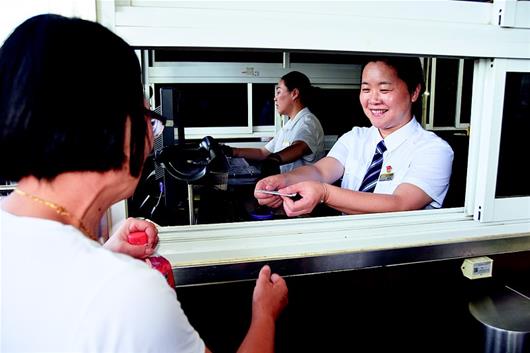 正值暑運高峰期,武昌火車站售票大廳內(nèi)人頭攢動,楊濤在售票窗口里幫旅客出票。