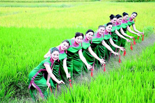 9月12日,公安縣天露湖國家農業(yè)公園金燦燦的稻田里,民間文藝愛好者共慶今秋豐收。當日,首屆中國農民豐收節(jié)·公安篇活動舉行。公安縣深化農村各類改革,現代農業(yè)持續(xù)高速發(fā)展,公安葡萄、公安牛肉、閘口小龍蝦、章田寺大米等多個品牌榮獲國家地理標志證明商標。