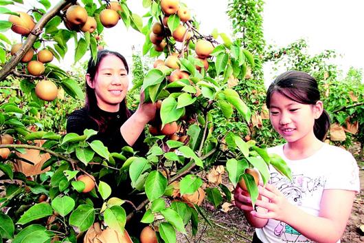 9月23日,游客在房縣生態(tài)小流域景和果園采摘香水梨。景和果園專(zhuān)業(yè)合作社在1000多畝撂荒地、荒山栽植蘋(píng)果、石榴、香水梨,今年全部進(jìn)入盛果期,實(shí)現(xiàn)收入60余萬(wàn)元。房縣通過(guò)綜合治理小流域,將荒山、荒坡地、撂荒地治理成梯平地,發(fā)展核桃、蜜橘、蘋(píng)果等特色干鮮果產(chǎn)業(yè),目前全縣水果種植面積達(dá)54萬(wàn)畝,年實(shí)現(xiàn)銷(xiāo)售干鮮果收入近11億元,農(nóng)民人均年收入達(dá)到9134元。