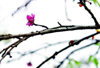 25日,長(zhǎng)江日?qǐng)?bào)記者在金銀湖濕地公園看到,園內(nèi)的梅樹、李樹、桃樹、櫻花樹、海棠樹等都存在少量開花的現(xiàn)象。