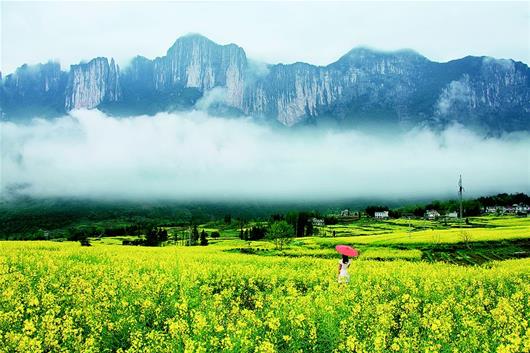 春分日,恩施大峽谷云霧繚繞,與萬(wàn)仞絕壁和油菜花一起,繪就一幅水墨畫(huà)卷。 (視界網(wǎng) 肖華林 攝)