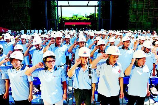 圖為:中天建設(shè)集團(tuán)舉行工會(huì)新會(huì)員集體入會(huì)宣誓。