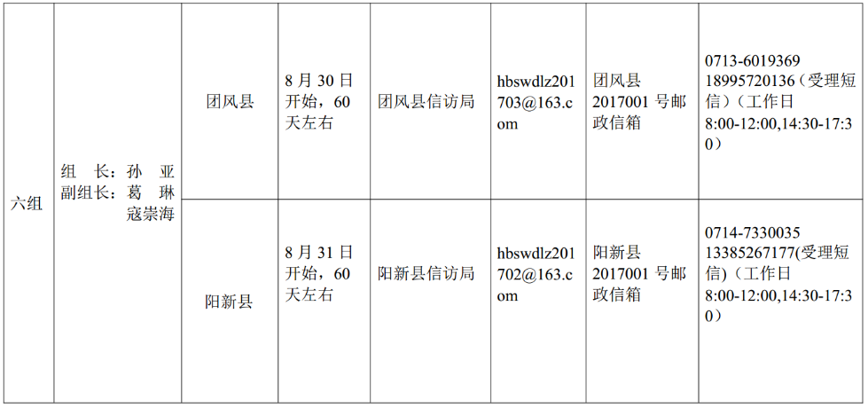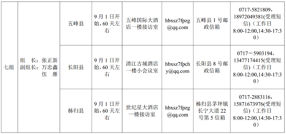 省委巡視組進駐情況一覽表詳見本報“看楚天”手機客戶端。根據巡視工作條例規(guī)定,省委巡視組主要受理反映被巡視縣(市、區(qū))委、政府領導班子及其相關成員,縣(市、區(qū))紀委監(jiān)察局領導班子及其相關成員,鄉(xiāng)鎮(zhèn)(街道)主要負責人問題的來信來訪,重點是關于貫徹落實中央和省委扶貧脫貧工作決策部署不堅決不到位,弄虛作假、扶貧工作不務實,以及對扶貧資金貪污挪用、截留私分、優(yōu)親厚友、虛報冒領、雁過拔毛、擠占掠奪等方面的舉報和反映。其他不屬于巡視受理范圍的信訪問題,按規(guī)定由被巡視單位和有關部門分別處理。