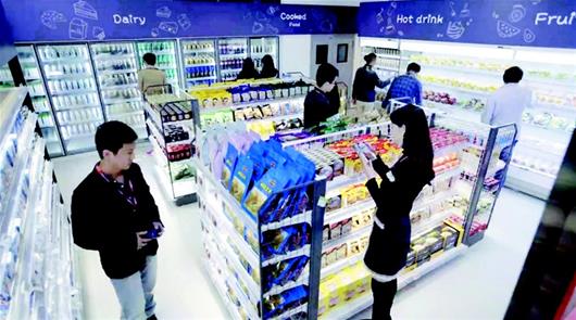 17日上午,京東無人超市60平方米的空間里,人潮涌動(dòng)。雖然沒有店員值守,但京東并不怕有人順手牽羊。因?yàn)槔锩嬗?0個(gè)攝像頭,一旦有人行為不檢點(diǎn)被拍到,下次他將進(jìn)不了超市。