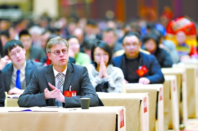 10日,武漢市第十四屆人民代表大會第二次會議開幕。圖為外籍人士在旁聽大會記者邱焰 攝