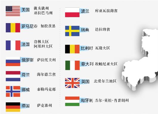 細(xì)數(shù)與湖北結(jié)好的40個(gè)國(guó)家,其中以美國(guó)、法國(guó)的“老友”居多,分別有10對(duì)和6對(duì)。