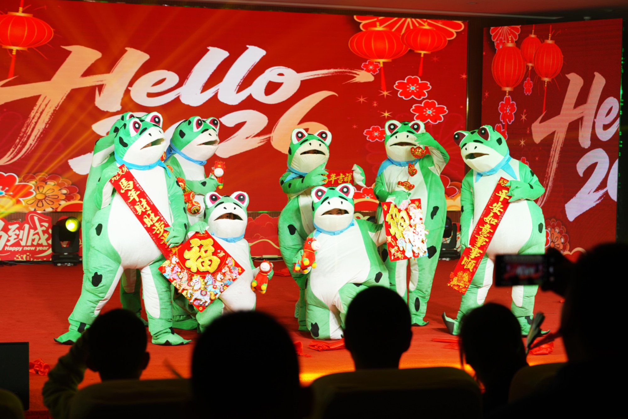相聲《奇聞軼事》包袱不斷、妙語連珠,消防員們將日常執(zhí)勤訓練中的趣事改編成段,在捧腹大笑中傳遞戰(zhàn)友情深;串燒舞蹈《聽取蛙聲一片》成為全場“反差萌”擔當!平日里嚴謹細致的消防員徹底“放飛自我”——身著圓滾滾的青蛙充氣服,萌態(tài)十足的扮相瞬間引爆全場笑聲。