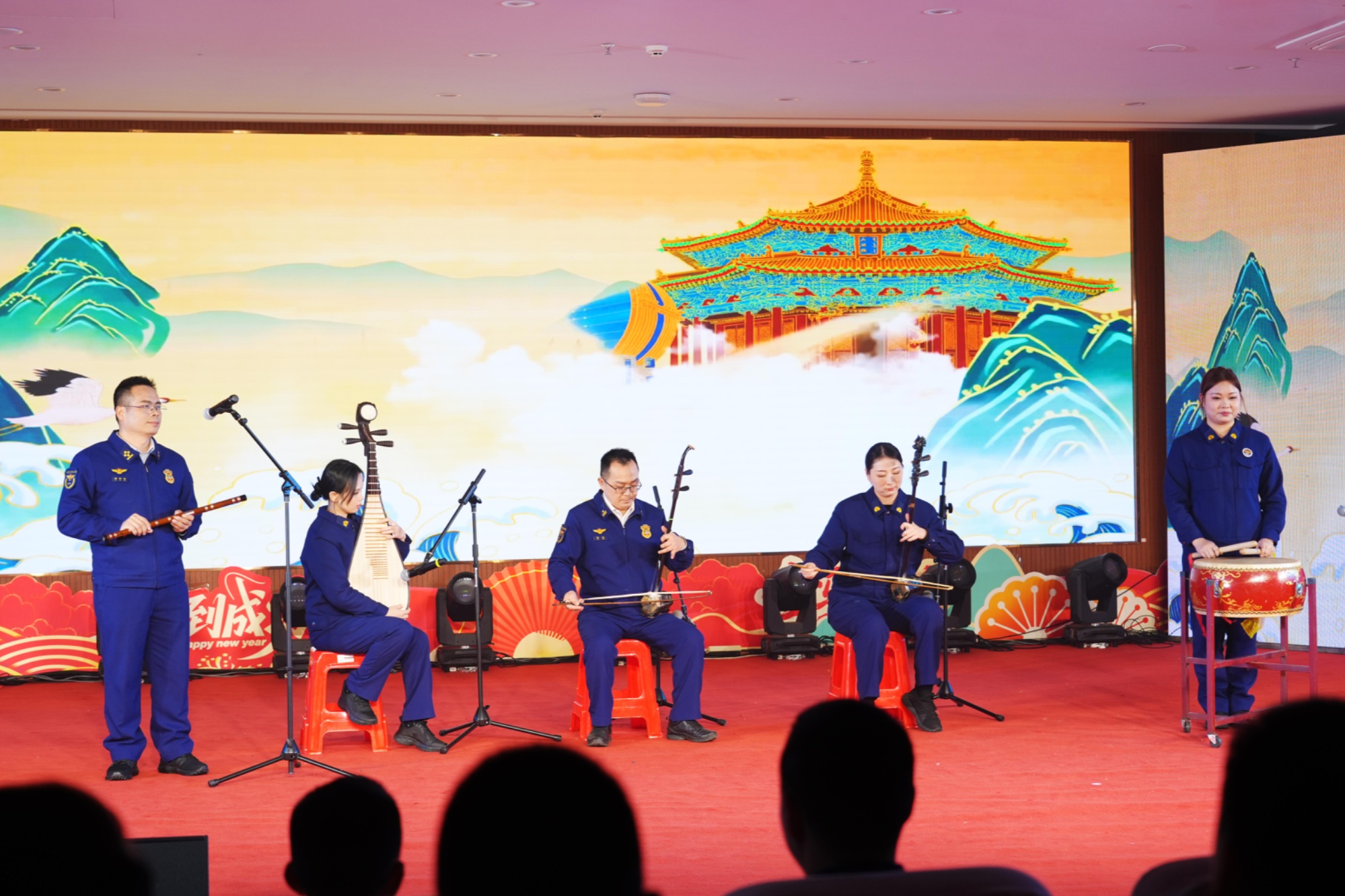 樂器合奏《蘭亭序》以悠揚的古箏與清越的笛聲交織,展現(xiàn)消防員文武雙全的別樣氣質。曳步舞串燒《男兒當自強》熱力登場,青春洋溢的舞步將晚會氣氛推向首波高潮。
