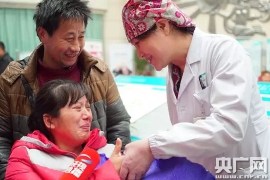 40歲的高位截癱“紅安繡女”席和玉,在武漢市婦幼保健院平安生產(chǎn),出院回家前,席和玉拉著醫(yī)生宋曉婕的手萬般感謝,流下了激動(dòng)的淚水。
