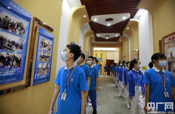 圖為:2020年8月28日,在湖北省武漢市楚才中學(xué)文化長廊內(nèi),七年級學(xué)生正接受銜接教育。(央廣網(wǎng)發(fā) 通訊員王方攝)