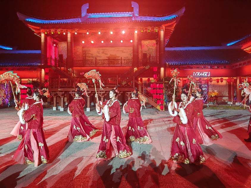 “武當一夢”園區(qū)除主秀《武當一夢》、主題餐秀《大話武當》、沉浸式互動劇本游《一步江湖》等演藝體驗外,園區(qū)同步引入武當燈坊、武當木造局等非遺體驗業(yè)態(tài),將傳統(tǒng)燈彩、木作技藝與當代消費場景結(jié)合。此外,室外演藝、武當官方文創(chuàng)館、花車市集、無人機煙花秀、“入境武當”VR大空間、太極武當球幕影院、天幕電競館等潮玩項目,構建起“白天觀光+夜間演藝+IP消費”的文旅融合新模式,為海內(nèi)外游客帶來更具感染力的沉浸式文旅體驗。