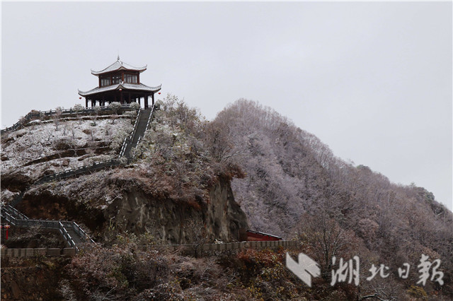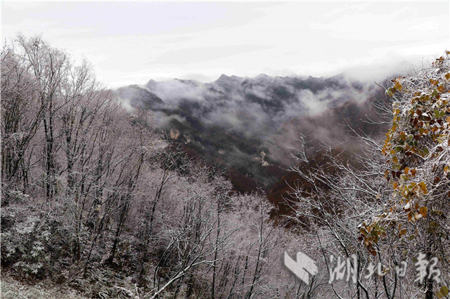 11月6日,在保康縣馬橋鎮(zhèn)堯治河村梨花山拍攝的雪景。當日,受冷空氣影響,保康縣馬橋鎮(zhèn)、龍坪鎮(zhèn)等海拔1200米以上的高山地區(qū)降下今年入秋以來第一場雪。(視界網(wǎng)楊韜張強攝)