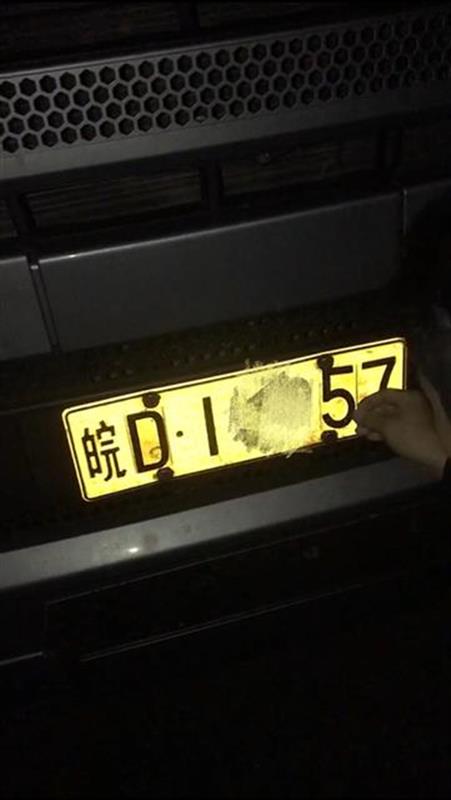 12月11日凌晨2點(diǎn)20分許,武漢洪山區(qū)交通大隊(duì)三中隊(duì)民警范暉在白沙洲大道三環(huán)線路段夜巡時(shí),發(fā)現(xiàn)一輛號(hào)牌為皖D1**57的灰色江準(zhǔn)牌重型半掛牽引車闖禁行,立即將車攔下檢查。民警將車牌號(hào)輸入系統(tǒng)查詢,竟是空號(hào),無車輛登記信息。經(jīng)仔細(xì)檢查,發(fā)現(xiàn)車牌號(hào)有些異常,其中的字母“D”和數(shù)字“5”顏色與車牌其他字母、數(shù)字的顏色有差異,似有被纂改過的痕跡。民警隨即拿出手電筒仔細(xì)查看,發(fā)現(xiàn)是經(jīng)“魔術(shù)貼”改造過的,民警取下“魔術(shù)貼”后露出了真實(shí)車牌號(hào)為皖G1**07。