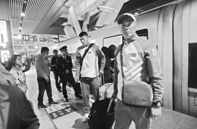 19點(diǎn)43分,列車(chē)緩緩進(jìn)站停穩(wěn),只見(jiàn)蒙古代表團(tuán)成員統(tǒng)一身著白藍(lán)紅三色的隊(duì)服下車(chē)。運(yùn)動(dòng)員們拿著行李從D3出口出站,跟隨工作人員的指引來(lái)到一樓西出站口,5輛大巴車(chē)和4輛行李車(chē)在門(mén)口等候。談到乘坐高鐵的感受,蒙古運(yùn)動(dòng)員紛紛稱贊中國(guó)高鐵的方便快捷、武漢的交通便利。