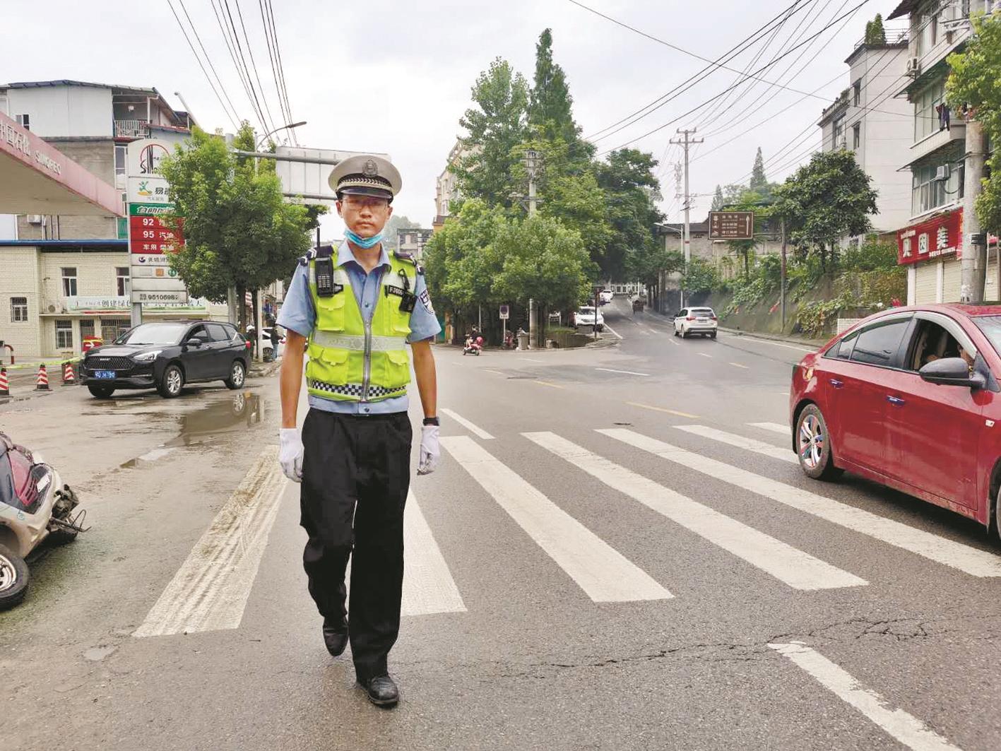 “他日常工作就是街面執(zhí)勤巡邏,小伙很敬業(yè)!闭勂鹂岛,六角亭交警中隊中隊長岳艷對他平時的工作非?隙ā1999年出生的康弘很靦腆,參加工作有兩年了,葉挺路是他日常巡邏的區(qū)域。“前幾次發(fā)大水,我看見他經(jīng)常都是光著腳在附近巡邏,維持秩序!睙嵝氖忻裥芘肯蛴浾哒f道。