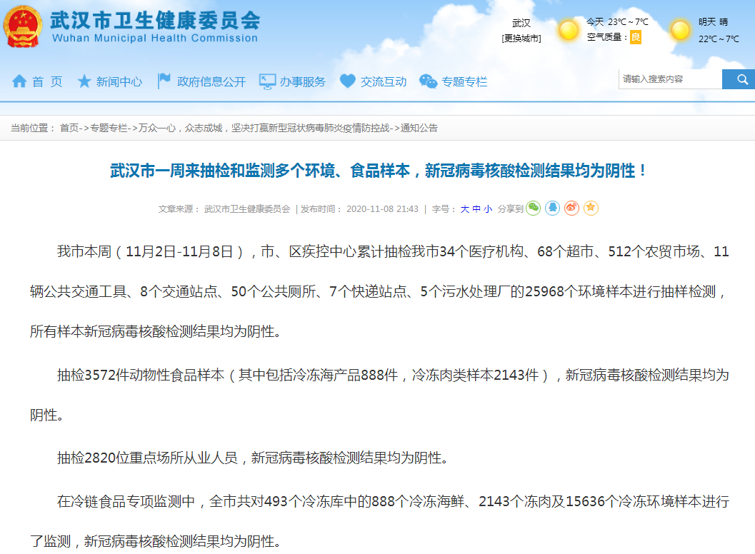 抽檢3572件動(dòng)物性食品樣本(其中包括冷凍海產(chǎn)品888件,冷凍肉類樣本2143件),新冠病毒核酸檢測(cè)結(jié)果均為陰性。