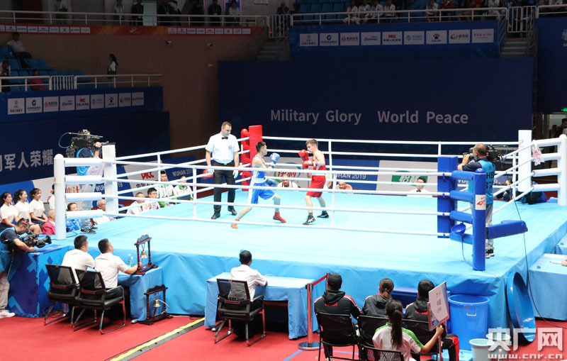 圖為:10月19日,第七屆世界軍人運(yùn)動(dòng)會(huì)拳擊比賽,男子56公斤級(jí)1/16預(yù)賽現(xiàn)場(chǎng)。央廣網(wǎng)記者張卓 攝