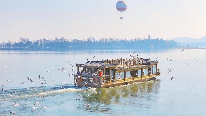 新春假期天氣晴好、氣溫回升,武漢東湖迎來了別具生機的“觀鷗季”尾聲。