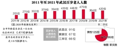 目前,全市15個區(qū)(含功能區(qū))都有百歲老人。武昌區(qū)百歲老人最多,共有91位;其次是黃陂區(qū)67位;再次是江岸區(qū)66位。