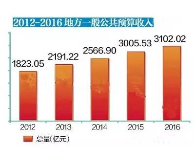 這幾年,地方一般公共預(yù)算收入由1470億元(2011年)增加到3102億元(2016年) 。
