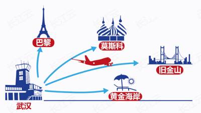 而從武漢天河機場出發(fā),不光能飛國內(nèi)主要城市,還能直航四大洲通達45個國際及地區(qū)城市。 什么巴黎、舊金山、莫斯科、澳大利亞隨便飛!