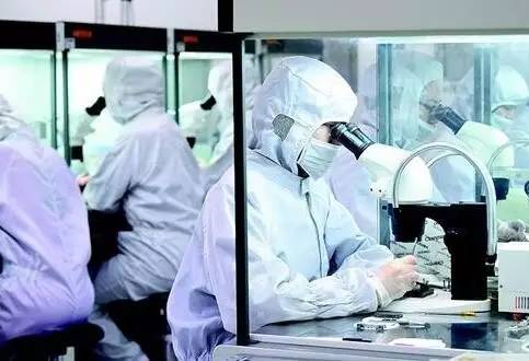 烽火科技員工在超凈間內(nèi)進行芯片生產(chǎn)