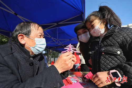 剪紙大師朱兵華展示非遺魅力。 長(zhǎng)江日?qǐng)?bào)記者陳亮 攝