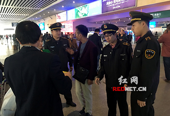 在火車南站,雨花區(qū)城市管理綜合執(zhí)法大隊火車南站中隊共13人!叭咳∠暗呐虐嘈菁伲珕T上崗!”中隊長易杲昱帶隊在轄區(qū)巡邏,“火車南站是黨代表們抵達長沙的第一站,我們不能松懈!睂τ诓糠致每痛嬖诘牟晃拿餍袨,比如亂吐亂扔,在督促站區(qū)物業(yè)保潔立即清理的同時,也對不文明行為人進行禮貌規(guī)勸和教育。