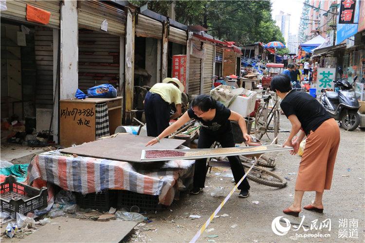 市民們自覺搬運(yùn)占道物品。 人民網(wǎng)長沙7月20日電 (萬麗君)今天上午,隨著城管人員揮錘,位于長沙市天心區(qū)赤嶺路街道南大橋社區(qū)的違規(guī)菜市場進(jìn)入拆違階段,拆除面積近8000平米。在街道和社區(qū)的妥善安排下,原有菜市場商戶均已入駐到新農(nóng)貿(mào)市場。 攤販占道、道路濕滑……存在于樓棟之間的湖南開關(guān)廠農(nóng)貿(mào)市場曾讓小區(qū)居民苦不堪言。如今,市場被正式拆除,還小區(qū)居民一個整潔宜居環(huán)境,讓周圍的居民們點(diǎn)贊不斷。 菜市場環(huán)境臟亂差 引發(fā)市民擔(dān)憂 上午,記者在現(xiàn)場看到,在湖開小區(qū)的新2棟和新3棟之間,密密麻麻擺滿了攤位,僅有非常狹窄的通道供市民通行,爛菜葉、塑料袋等垃圾隨處可見,環(huán)境十分混亂。 “臟、亂、差。”在小區(qū)經(jīng)營雜貨鋪的黃老板看著就擺在自己店鋪門口的小攤,連連搖頭,“道路坑坑洼洼,雨天濕滑,都不敢讓老人小孩出門,而且還存在很嚴(yán)重的消防隱患! 據(jù)菜市場所屬南大橋社區(qū)的社區(qū)書記許艷介紹,開關(guān)廠農(nóng)貿(mào)市場成立于2000年,除本身市場攤位,更有不少本地人在沿路臨時擺攤設(shè)點(diǎn),導(dǎo)致沿線垃圾成堆, 衛(wèi)生環(huán)境差, 管理難度大,居民投訴不斷。 針對居民所反映的問題,7月初,赤嶺路街道、南大橋社區(qū)聯(lián)合執(zhí)法部門對違規(guī)菜市場下達(dá)了限期搬離通知。今天上午,消防、市容、城建、安監(jiān)等執(zhí)法部門對違規(guī)露天菜市場進(jìn)行取締拆除。 原有商戶搬至商業(yè)街 升級改造還市民宜居環(huán)境 違規(guī)露天菜市場被拆,原有的70多名商戶如何安置?據(jù)了解,在街道和社區(qū)的協(xié)調(diào)下,幾乎所有商戶都已搬至地下的興威商業(yè)街,重新營業(yè)。商業(yè)街距離原有菜市場不過5分鐘步行路程,對于商戶經(jīng)營并未造成太大影響。 在露天菜市場做了20多年蔬果生意的賀德意也搬到了地下農(nóng)貿(mào)商場,地面干凈整潔、時常有熟客光顧,讓他很快適應(yīng)了新的經(jīng)營環(huán)境。 “今天的菜都賣的差不多了,都是熟客呢!” 賀德意說,搬下來之后,生意并沒有大幅減少,而且地下商場不僅環(huán)境好,社區(qū)還安裝了電風(fēng)扇散熱,比在露天經(jīng)營要相對舒服。 據(jù)興開鋪商業(yè)運(yùn)營中心主管盛艷新介紹,目前已有78戶原有露天菜市場商戶搬入地下農(nóng)貿(mào)商場。針對商戶變多的情況,運(yùn)營中心將增加抽風(fēng)系統(tǒng),打通樓道,改善商戶的經(jīng)營環(huán)境,讓居民買菜更加方便。 據(jù)悉,露天菜市場拆除之后,社區(qū)將會進(jìn)行提質(zhì)改造,破損的水泥路將被全部更換為瀝青路面,并且增加綠化,變成居民休閑娛樂的好去處。