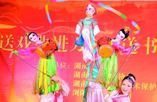 1月25日,演員在表演木偶舞蹈《虞美人》。當(dāng)天,由湖南省文化廳、湖南省書法家協(xié)會(huì)主辦的“送戲曲進(jìn)萬村,送書畫進(jìn)萬家”文化惠民活動(dòng)在瀏陽市鎮(zhèn)頭鎮(zhèn)舉行。