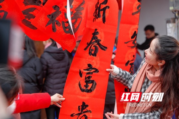 長沙縣高橋鎮(zhèn)高橋老街開街趕集,鎮(zhèn)上的居民紛紛前來挑選中意的春聯(lián)。