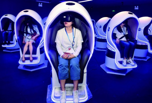 5月18日晚,市民在體驗(yàn)VR沉浸式“帛畫奇境”。當(dāng)天是國(guó)際博物館日,湖南省博物館舉行“博物館之夜”活動(dòng),通過(guò)現(xiàn)代技術(shù)創(chuàng)新與歷史文物的融合,讓市民和游客體驗(yàn)一場(chǎng)奇妙的文化之旅。湖南日?qǐng)?bào)記者 郭立亮 攝