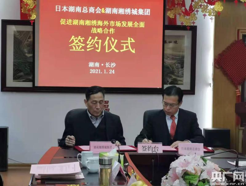 央廣網(wǎng)長沙1月25日消息(記者鄧文輝)1月24日,日本湖南總商會與湖南湘繡城集團(tuán)在長沙簽定湖南湘繡海外市場發(fā)展全面戰(zhàn)略合作協(xié)議。協(xié)議規(guī)定,雙方攜手合作共同打造跨境電商平臺,聯(lián)合在日本共同創(chuàng)建跨境海外倉,擴(kuò)大雙方跨境電商國際市場的進(jìn)出口業(yè)務(wù)。