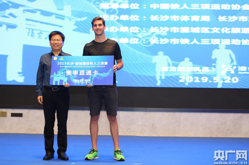 新聞發(fā)布會(huì)現(xiàn)場(chǎng)邀請(qǐng)了來自澳大利亞的鐵三世界冠軍米歇爾·保羅·羅賓斯(央廣網(wǎng)發(fā) 組委會(huì)供圖)