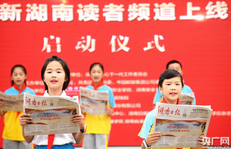 啟動(dòng)儀式現(xiàn)場,來自長沙清水塘第二小學(xué)和長沙師范學(xué)校附小的小學(xué)生們齊聲朗誦(央廣網(wǎng)發(fā) 湖南日報(bào)供圖)