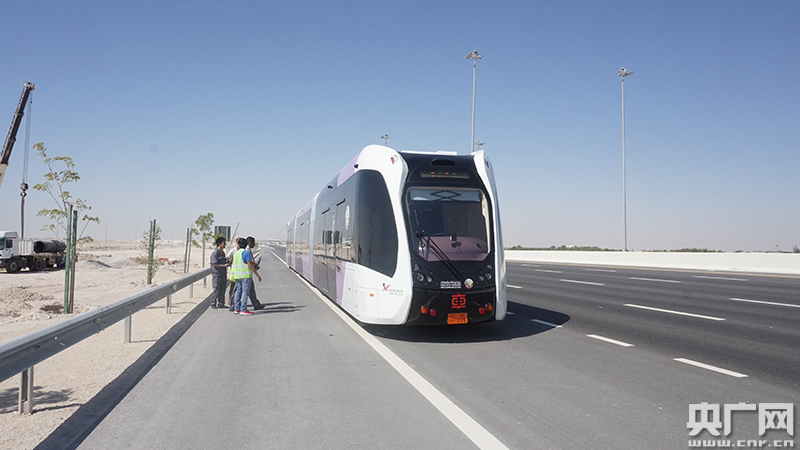 智軌列車在卡塔爾試跑。(央廣網(wǎng)發(fā) 中車株洲所供圖)