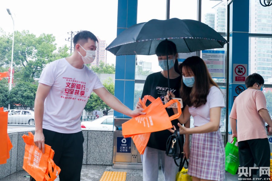 由20名志愿者組成的騎行小分隊(duì)從五一大道華美歐大廈出發(fā),吸引了很多路人的目光。盡管當(dāng)天上午長沙下著雨,但絲毫沒影響到志愿者們的干勁兒。在沿線的地鐵口,志愿者向行人發(fā)放安全騎行宣傳品及倡議書。勸導(dǎo)小分隊(duì)的志愿者們?cè)谖逡宦、韶山路、解放路口,?duì)堵塞地鐵口、消防通道、學(xué)校門口、人行道的共享單車進(jìn)行了清理,并引導(dǎo)行人規(guī)范停車,對(duì)逆行、闖紅燈等違反交通規(guī)則的騎手進(jìn)行勸誡。