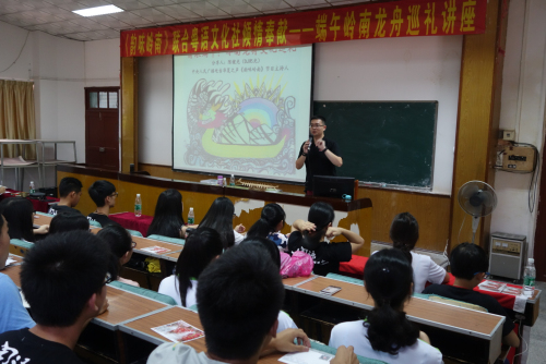 期間,《韻味嶺南》主持人陳健光(DJ肥光)講演了《嶺南龍舟巡禮》的講座,與在座的老師、同學分享珠三角各地龍船文化,包括廣州番禺沙亭龍舟乸、廣州珠村起龍船、新橋散龍膥、香港大澳龍舟游涌等嶺南龍舟特色文化。兩個小時的講演和交流受到了老師和同學的一致好評。